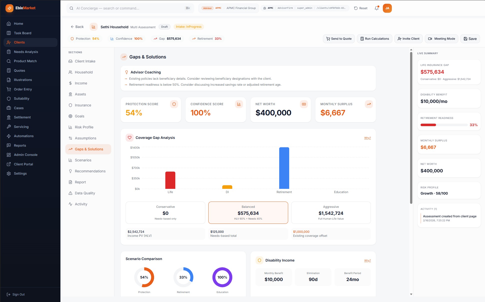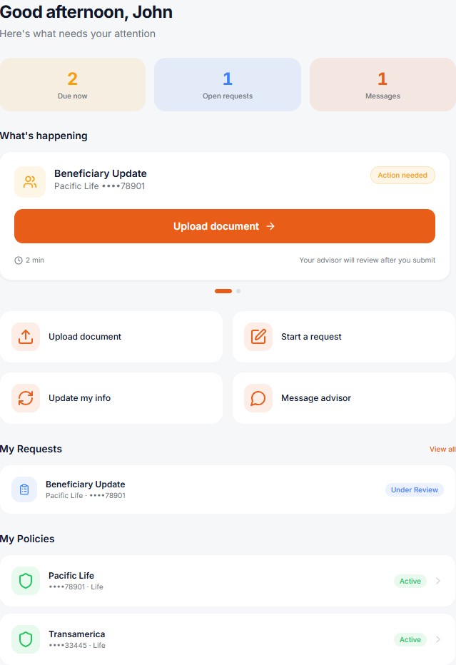 Built as an exchange: multiple advisor firms and multiple carriers, governed by one platform.